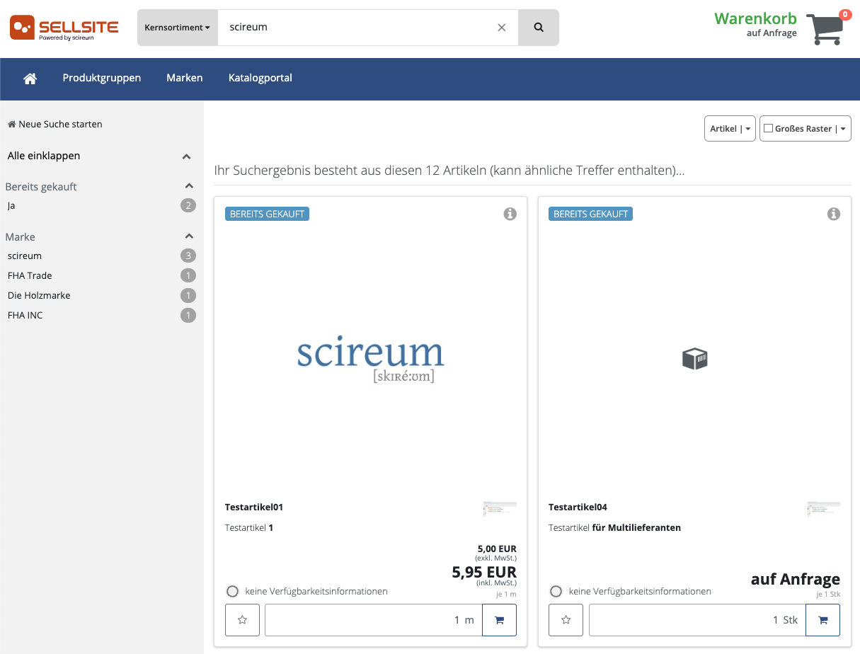 Durch passende Konfiguration lässt sich ein Suchbereich mit Artikeln bestimmter Kataloge
